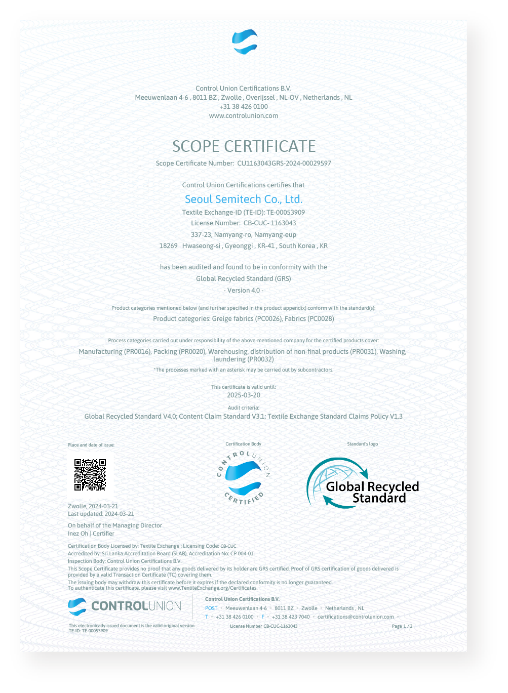 GRS 인증서