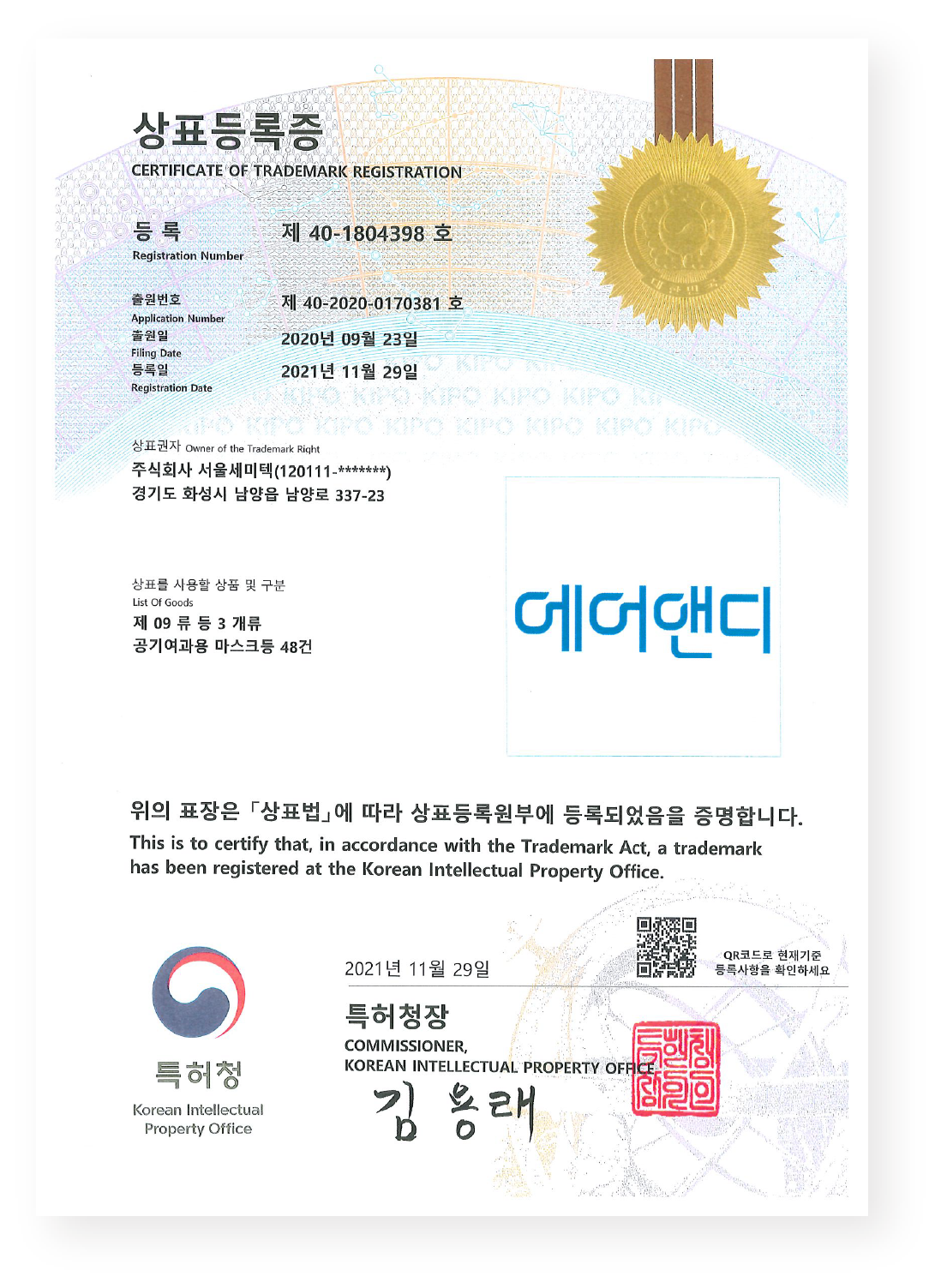 상표등록증 - 에어앤디
