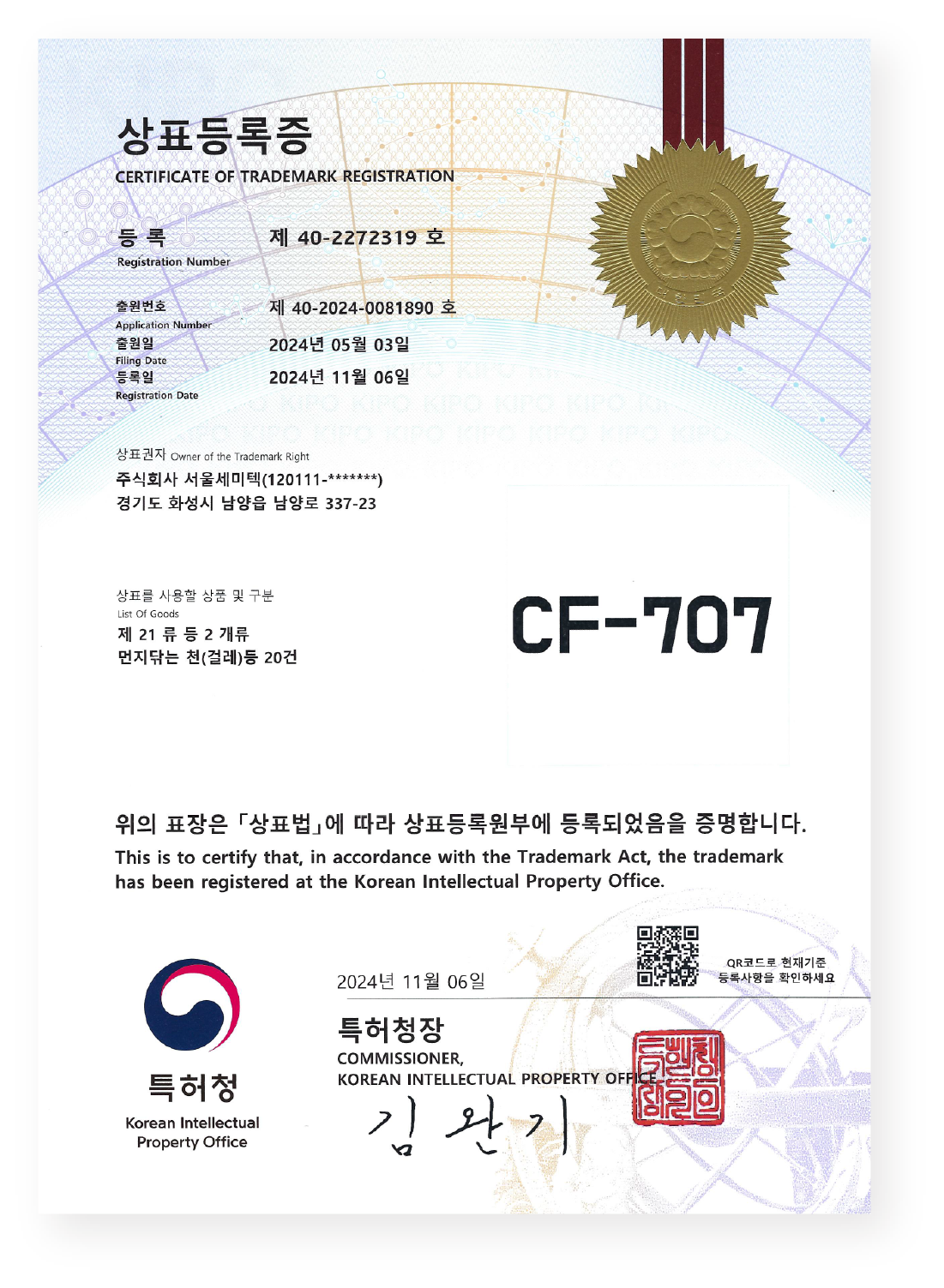 상표등록증 - CF-707