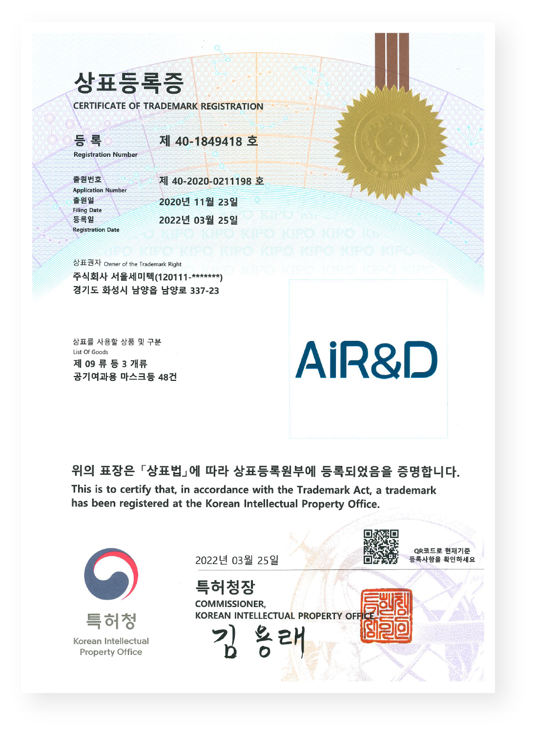 상표등록증 - AiR&D
